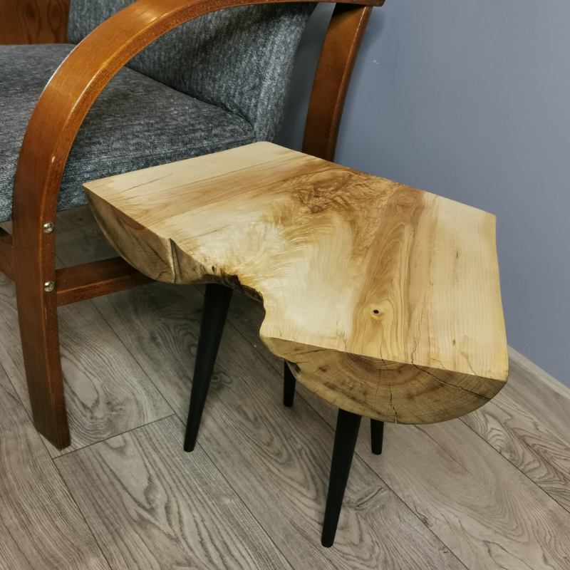 średnica stolika około 36 na 34cm zabezpieczony olejem rubio monocoat nogi drewniane